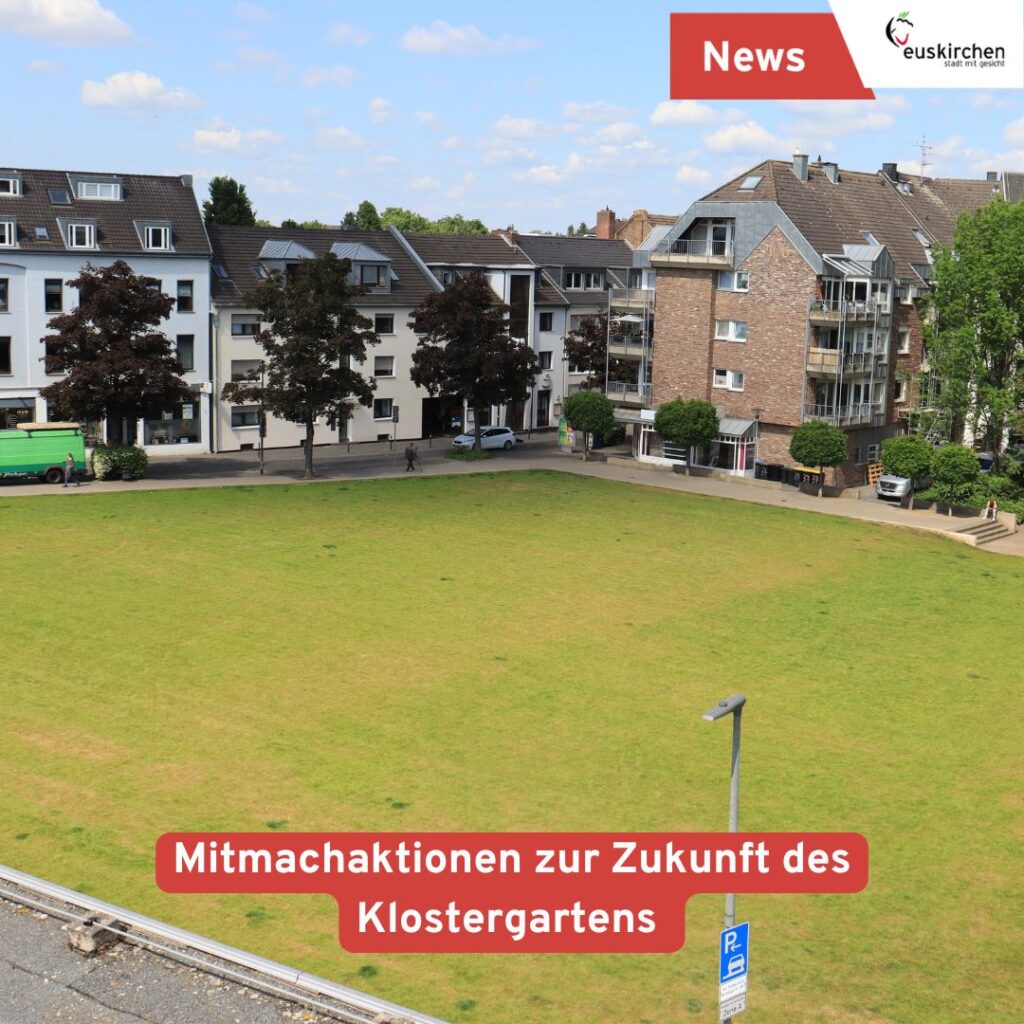 Die Verwaltung lädt alle Bürgerinnen und Bürger herzlich ein, sich aktiv zu beteiligen, damit der Klostergarten im Sinne aller Menschen in Euskirchen gestaltet und später auch genutzt werden kann.